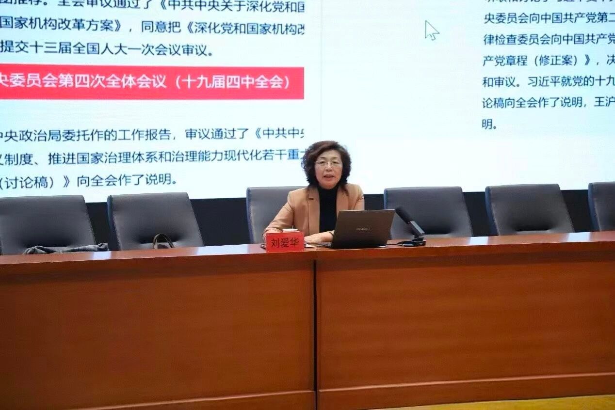 、数学科学学院与外国语学院联合承办的“学习贯彻党的二十届四中全会精神内蒙古师范大学宣讲团报告会”在赛罕校区信息楼学术交流中心报告厅举办。我校马克思主义学院刘爱华教授应邀作专题宣讲报告。