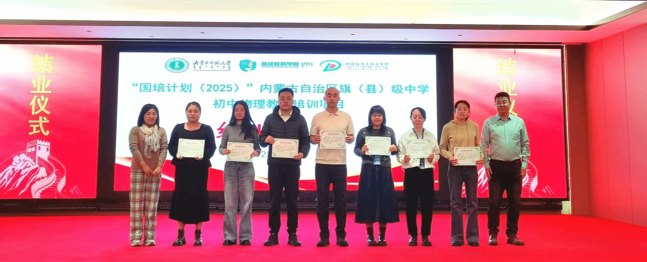 承办的“国培计划(2025)”——内蒙古自治区旗(县)级中学初中物理教师培训项目圆满结束。作为本次培训的收官环节,结业仪式于当日顺利举行。仪式由学院办公室主任张天臣主持。