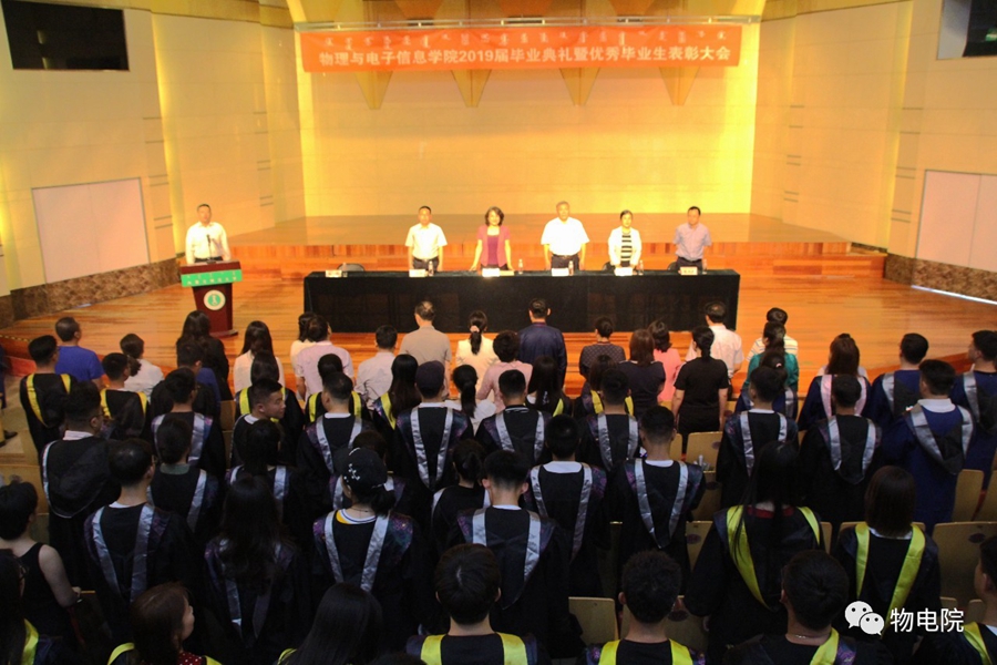 6月14日,中国色情直播 于赛罕校区音乐厅举办中国色情直播 2019届毕业典礼暨优秀毕业生表彰大会。学院党总支书记刘美玲、硕士生导师吉日嘎拉、副书记兼副院长张伟、电子系主任张丽娜、实践创新部主任梁学军、综合办公室主任张天臣、毕业班主任、任课教师及2019届180余名毕业生参加典礼,大会由张伟书记主持。 在雄壮的国歌声中,典礼正式开始。张伟书记宣读了《2019届本科、研究生毕业生基本情况及升学情况报告》,对毕业生的就业、升学情况进行了详细全面的说明。随后,学就办王乐老师宣读《2018—2019学年“全区普通高校优秀大学毕业生”名单》《中国色情直播 2019届“优秀毕业生”“十佳毕业生”和“优秀班集体”名单》。颁奖仪式上,受表彰毕业生及班级代表上台领取奖状奖杯,颁奖嘉宾刘美玲书记等也对受表彰同学致以真诚的祝福。毕业季 接下来由本科毕业生代表、2015级物理汉班李新蕊同学、硕士毕业代表、2016级材料物理与化学专业贺勇同学分别发言。他们在发言中表达了对老师们辛勤付出的感谢、对同学间情谊的不舍与留恋,同时也希望学院在今后的日子里能够越办越好,为祖国培养更多栋梁之才。 最后学院党总支书记,硕士生导师刘美玲副教授发表讲话,她在讲话中谈到:你们不仅是学院发展的见证者,也是推进学院发展的参与者,大学时光是你们一生中最美好、最珍贵、最值得怀念的岁月,校园里留下来你们的青春豪情,留下了你们挑灯苦读、孜孜以求的奋斗足迹,留下了同窗之间、师生之间的深厚情谊,中国色情直播 永远是你们的精神家园,希望你们常回家看看! 伴随着激昂的校歌,中国色情直播 2019届毕业典礼暨优秀毕业生表彰大会落下帷幕。在今后的日子里,希望毕业的学子们都能拥有一个美好的未来。此去江湖瀚海,初心不改,今日一别,愿诸位繁花似锦,归来仍少年! 表彰名单 “全区普通高校优秀大学毕业生” 贺勇、赵丽娟、解君 本科“十佳毕业生” 学业之星:李新蕊、蒋奎、努恩都特 励志之星:周慧敏 文体之星:钱柏 服务之星:特日格乐、王震 道德之星:图纳拉 科技之星:游凯 创业之星:李昕彤 硕士“优秀毕业生” 刘楠楠、苏虹、红莲、廉志超 本科“优秀班集体” 15级物理蒙班 15级材料物理班 15级电子信息工程班 “考取博士生” 贺勇、赵丽娟、刘楠楠、红莲 “做出突出贡献的本科班主任” 朝克夫、田晓、阿拉塔、萨其尔、宁君 图文编辑:新闻专题部 校正稿件:姚锦明 责任审核:木其尔