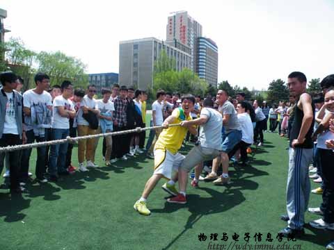 此次比赛的初赛采用随机抽取、三局两胜制度,每个班级由15名同学组建一支参赛队。比赛过程中,各参赛队表现出了顽强的意志和拼搏精神,既赛出了水平又赛出了风格。在啦啦队震耳欲聋的“一二加油”的呐喊声中,参赛队员卯足了劲,涨红了脸,抓紧了绳,全力以赴,努力争夺。加油声、叹息声、欢笑声此起彼伏,现场气氛十分活跃。一场场比赛也牵动着老师的心。呐喊声中,师生融为一体,心贴得更紧了。经过三天角逐,最终10级物理蒙班、09级物理蒙班、11级工程(二)班分别获得冠、亚、季军。