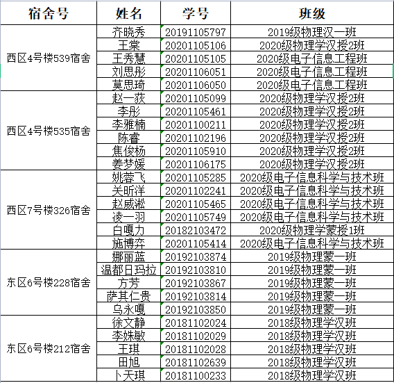 附:评为我校2021-2022学年第二学期学生公寓“内务标兵”宿舍人员具体名单