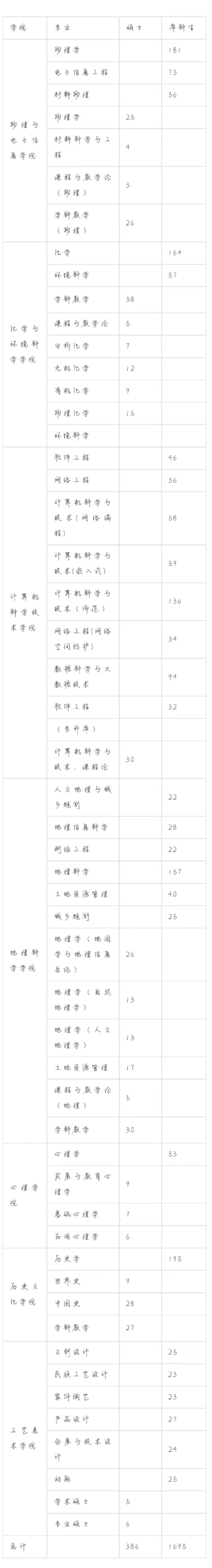 、化学与环境科学学院、计算机科学技术学院、地理科学学院、心理学院、历史文化学院、工艺美术学院