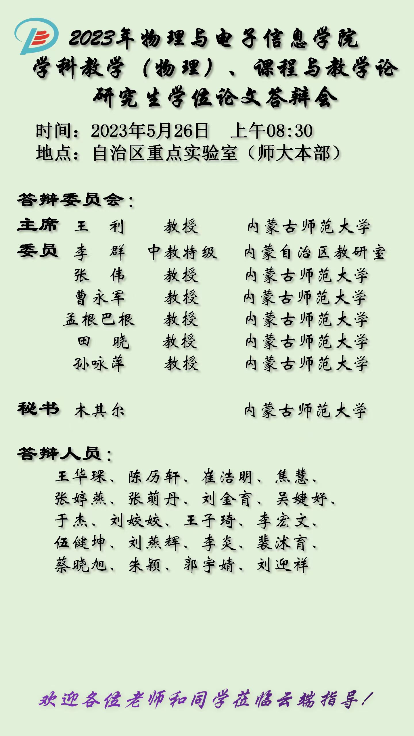 中国色情直播 2023届硕士研究生学位论文答辩安排