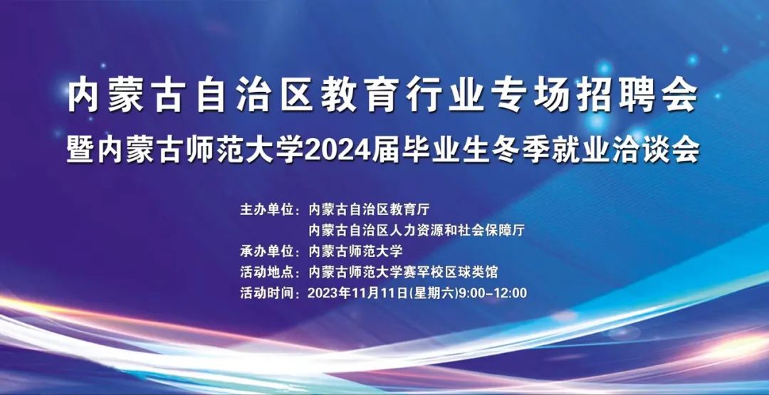 为深入贯彻落实党中央、国务院“稳就业”“保就业”决策部署,抢抓秋招关键期,全力攻坚促就业,满足教育行业用人单位招才引智需求,促进自治区教育类毕业生高质量充分就业,内蒙古自治区教育厅、内蒙古自治区人力资源和社会保障厅联合主办,内蒙古师范大学承办“内蒙古自治区教育行业专场招聘会暨内蒙古师范大学2024届毕业生冬季就业洽谈会”,诚邀用人单位莅临选聘英才。