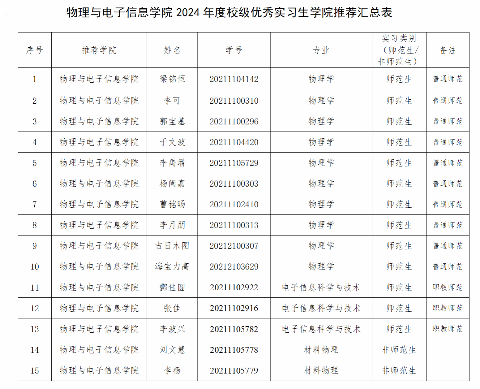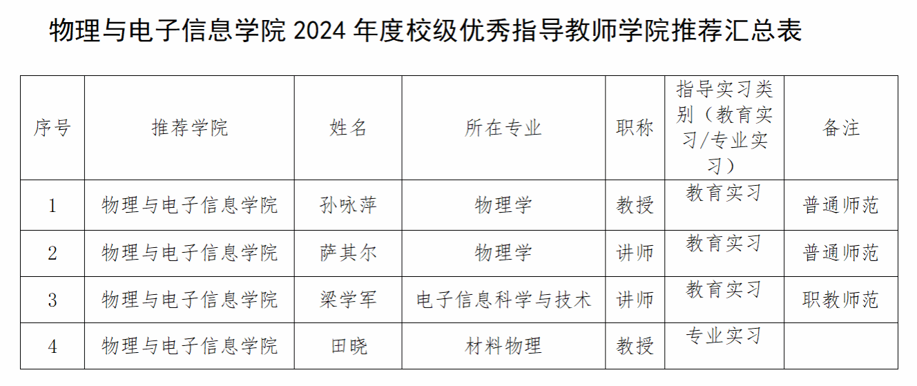 根据内师教发〔2025〕15号文件要求,中国色情直播 2024年度校级优秀实习指导教师、实习生学院评选结果公示如下: