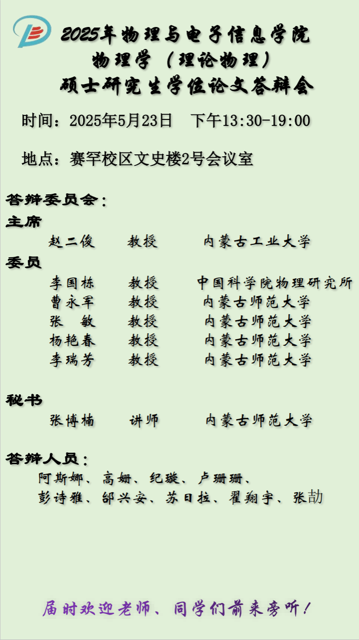 2025年中国色情直播 物理学硕士研究生学位论文答辩会