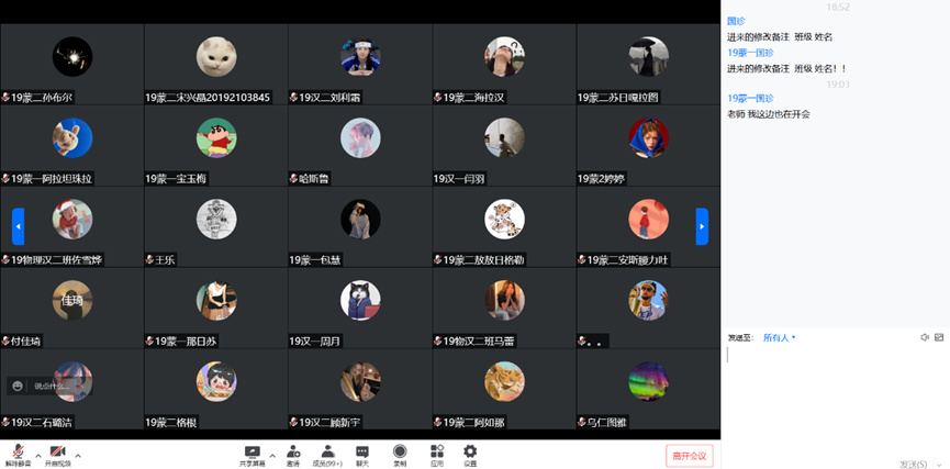 于2月25日晚7-9点再次召开2019级物理学本科师范生实习动员大会线上会议。院长曹永军、副院长那日苏,全体实习指导老师及2019级全体物理学本科师范生参加会议,会议由物理系系主任朝克夫主持。