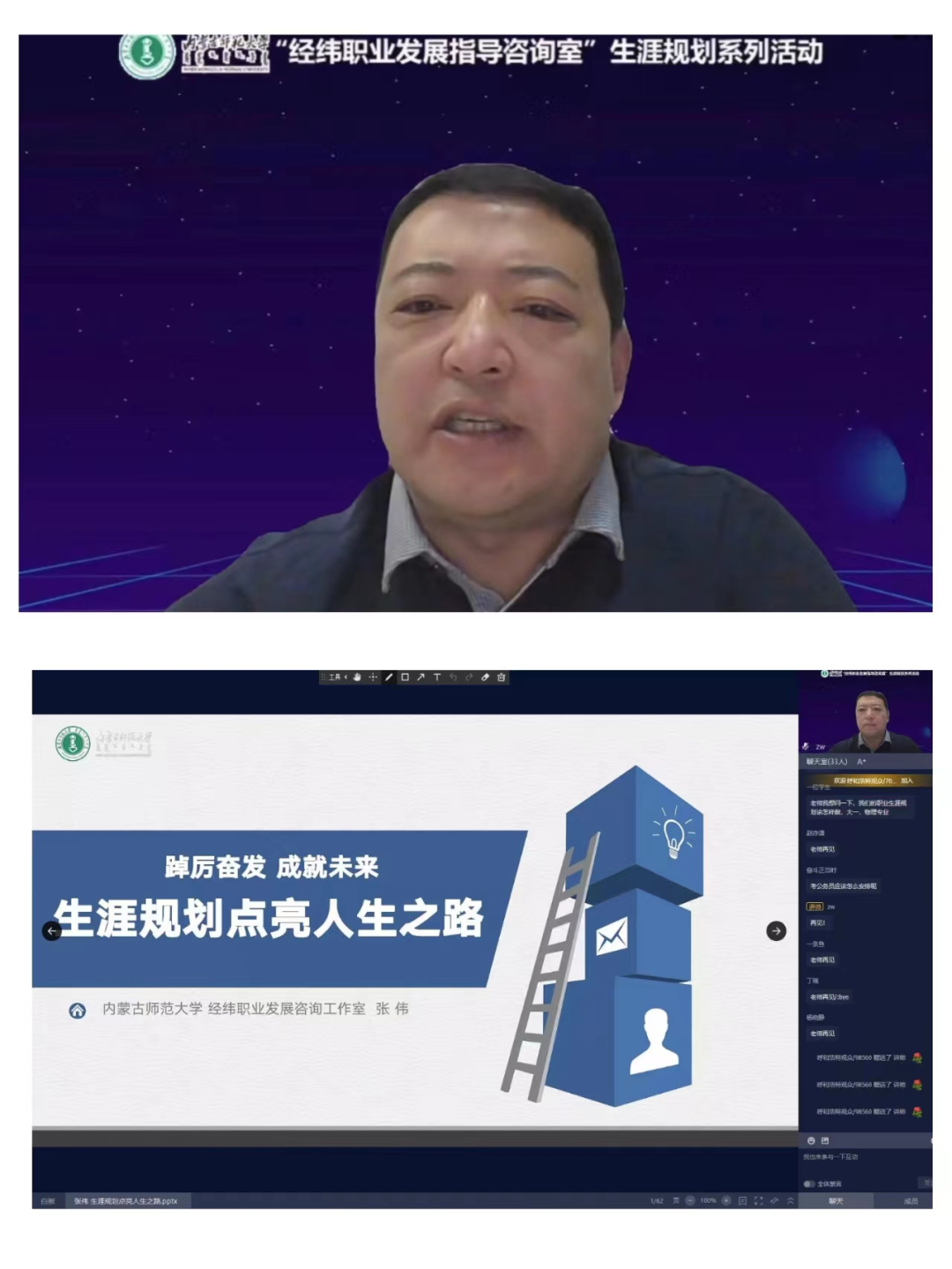 党委副书记兼副院长张伟老师主讲。讲座中,他围绕认识职业生涯规划、唤醒生涯规划意识、大学四年生涯规划三个方面进行讲解,指出了生涯规划对于学生未来发展道路的重要作用和意义,引导同学们科学、合理地进行生涯规划。