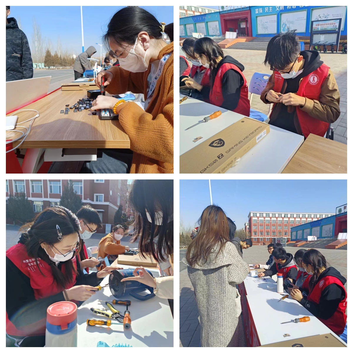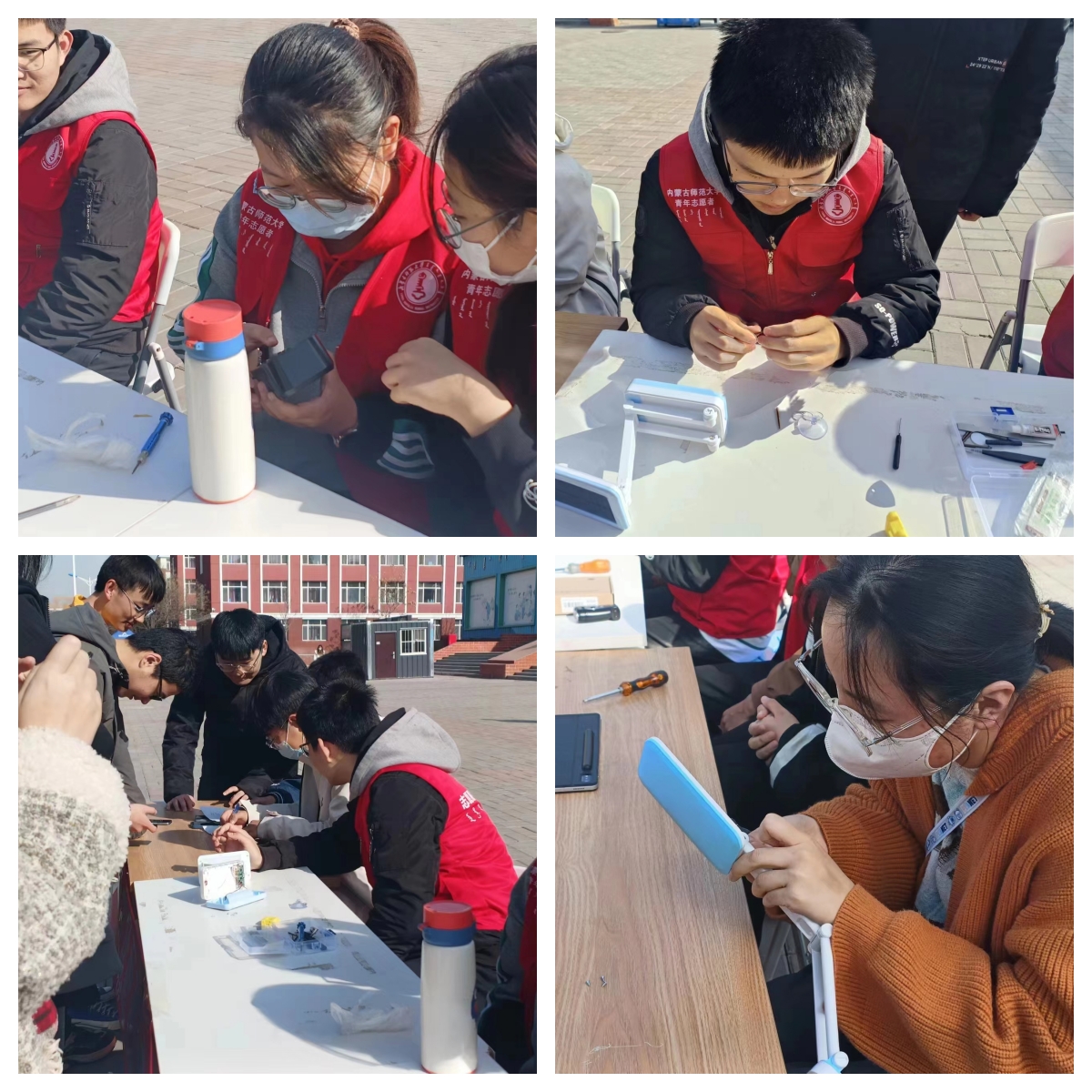 团总支在盛乐校区群鸿餐厅西门开展“义务维修献真情 志愿服务暖人心”志愿服务活动。
