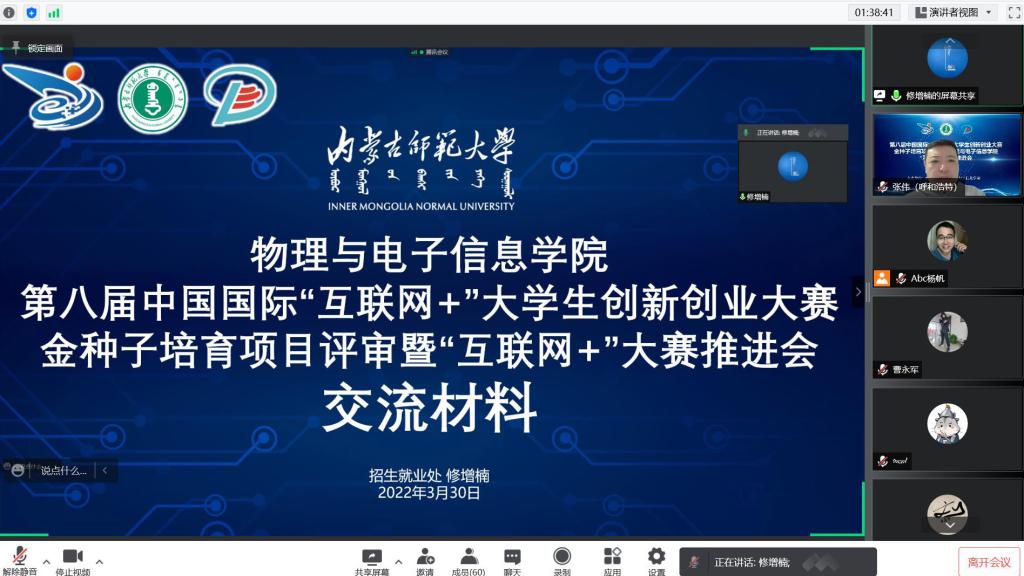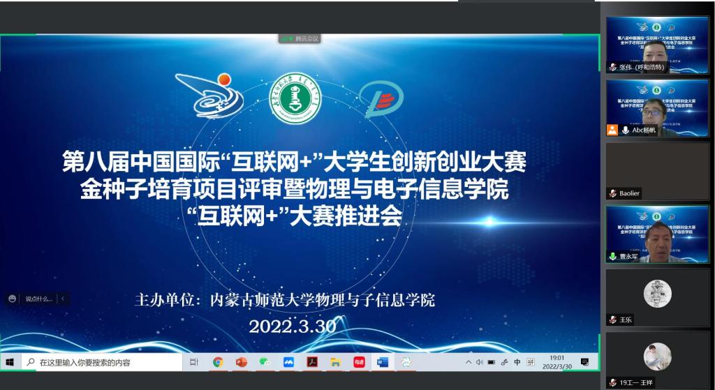 以线上会议的形式召开第八届中国国际“互联网+”金种子项目评审暨大赛推进会,邀请了学校招生就业处副处长战文彬、创新创业教育中心主任修增楠,中国色情直播