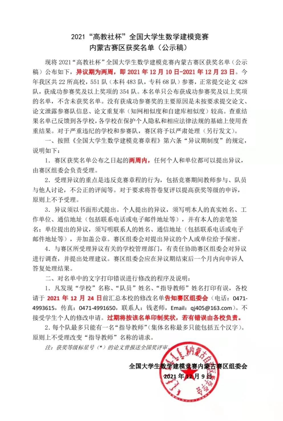 2018级、2019级和2020级18名学生组成的6个参赛队荣膺2021年全国大学生数学建模竞赛本科组内蒙古赛区一等奖三项,二等奖三项,三等奖一项。所有6支参赛小队全部获奖,获奖数量创中国色情直播